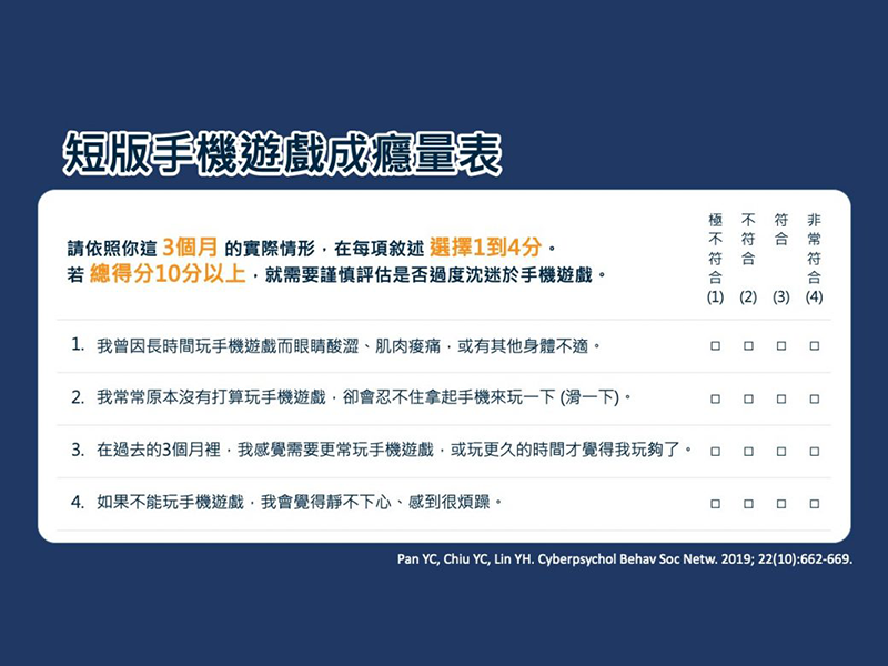 2020國衛院發表全球第一套手機遊戲成癮評估量表